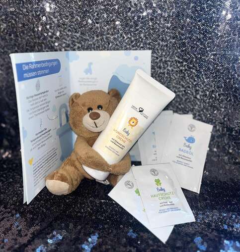 Hautpflege-Proben unserer Eigenmarke - speziell entwickelt für empfindliche Babyhaut mit ausgezeichneter Qualität, auf die ihr euch verlassen könnt