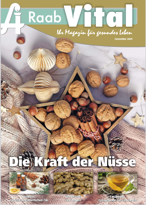 Die neue Ausgabe zeigt, warum Nüsse im Winter echte Gesundheitsbooster sind: Sie liefern Energie, stärken Herz und Gehirn und passen perfekt in eine bewusste Ernährung. Außerdem im Heft: die wohltuende Wirkung ätherischer Öle, die Kraft des Ingwers und gesunde Teerituale für die kalte Jahreszeit.