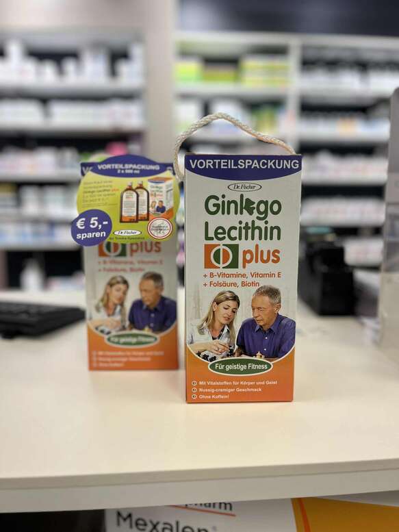 Ginkgo Lecithin Plus Dr. Fischer unterstützt dich im Beruf, Alltag und Sport mit wertvollen Vitalstoffen. Pro Tagesdosis enthält das wohlschmeckende Tonikum 300 mg Ginkgofluidextrakt aus pharmazeutisch kontrolliertem Anbau sowie hochwertiges Sojalecithin.