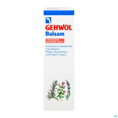 Erfrischend belebender Fuß-Balsam.pflegt, desodoriert, verhindert Fußpilz.Kühlendes Menthol und natürliche ätherische Öle aus Rosmarin und Lavendel erfrischen und beleben. Fußbrennen und Ermüdungserscheinungen verschwinden sofort. Müde, wehe Füße leben auf. Bewährte antimikrobielle Stoffe verhindern Fußgeruch nachhaltig, bieten einen wirksamen Schutz vor Fußpilz und halten die Füße hygienisch frisch. GEHWOL Balsam für trockene, spröde Haut ist reich an hautfreundlichen Pflegestoffen wie Lanolin und Avocadoöl. Raue und rissige Haut wird wieder glatt, geschmeidig und widerstandsfähig. Aloe Vera bindet zusätzliche Hautfeuchtigkeit. GEHWOL Balsam für trockene, spröde Haut hinterlässt das angenehme Gefühl einer gut gepflegten Haut.
