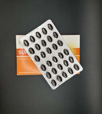 Nahrungsergänzungsmittel auf der Basis von Lycopin, Beta Carotin, Mangan, Vitaminen und schwarzem Johannisbeeröl. Für eine antioxidative Wirkung und Schutz gegenüber der an die Sonnenexposition geknüpften Phänomene